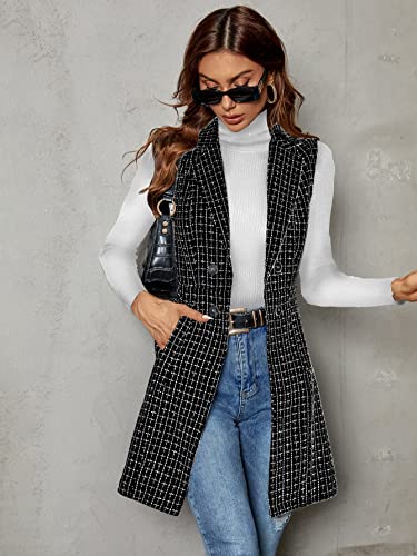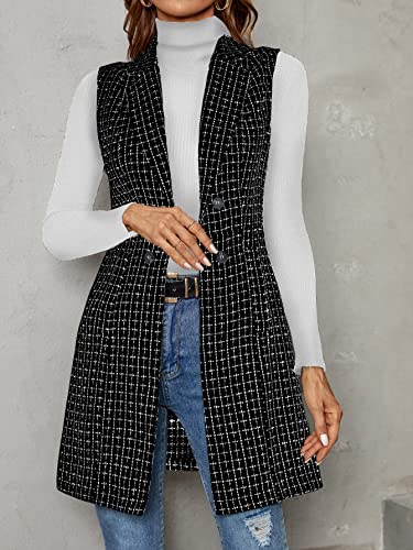 HOT ! Floerns Women's Plaid Print Button Front Sleeveless Lapel Collar Blazer Jacket