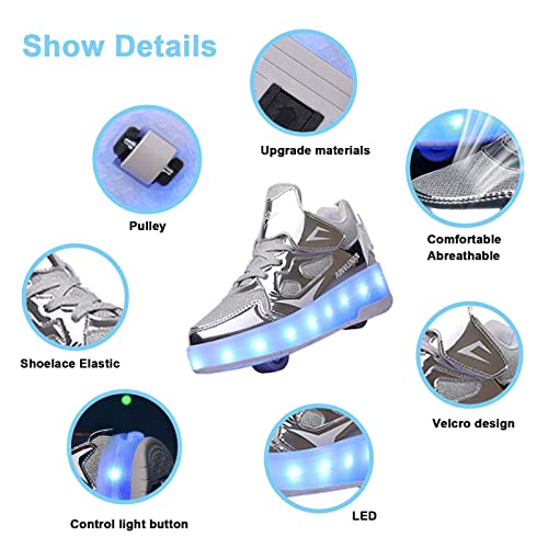 EMDPBD Roller Skates Shoes USB Charging, Unisex Kids LED Light Up Retractable Roller Skate Sneaker Flashing Wheel Shoes for Girls Boys,Silver-3.5BigKid 2