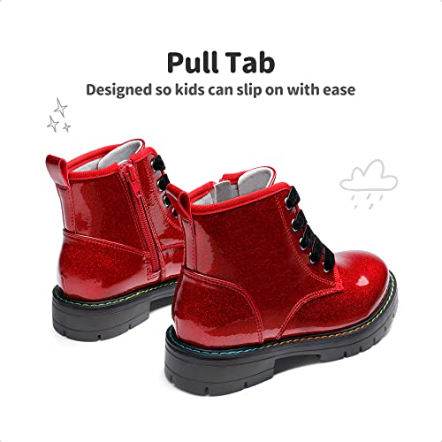 DREAM PAIRS Girls Boys Glitter Ankle Boots Side Zipper Combat Shoes with Lace Up for Toddler/Little Kid/Big Kid 5