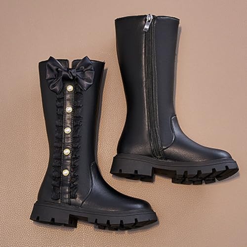 Girls Mid Calf Riding Boots Toddler Girl Fall Leather Snow Boots Kids Cute Shoes with Pearl Bowknot Side Zipper Dressy Princess Boot 1