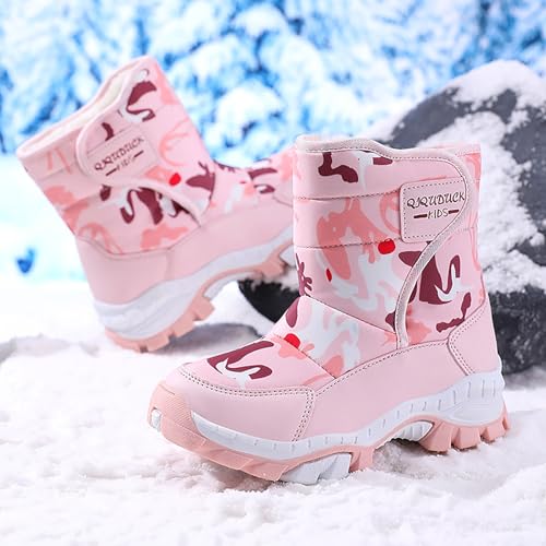 IWIHMIV Girls Winter Boots Kid Thickened Warm Comfortable Mid Calf Boots Boys Outdoor Hiking Winter Shoes 4