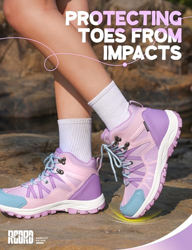 R CORD Kids Hiking Boots Waterproof Outdoor Ankle Boots Anti-Slip Walking Shoes Hiking Shoes for Camping 4