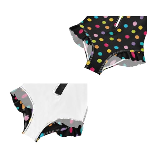CHIFIGNO Crayon Polka Dots Black Rashguard One Piece Swimsuits for Girls Long Sleeve Zipper Swimwear 3T 6
