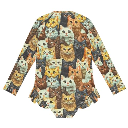 ALAZA Multicolor Cat Kitten Girls One Piece Swimsuit Long Sleeve Rash Guard Swimsuits UV 50+ Swimwear Zipper 1