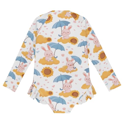 ALAZA Toddler Swimsuit Girl Bathing Suit Swimwear Rash Guard Rabbit Umbrella Long Sleeve 3T 6