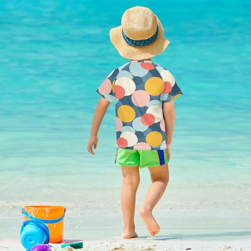 Circle Deep Blue Girl Bathing Suit Short Sleeves Basketball Tshirt Swimwear Beach Tops 3T 2