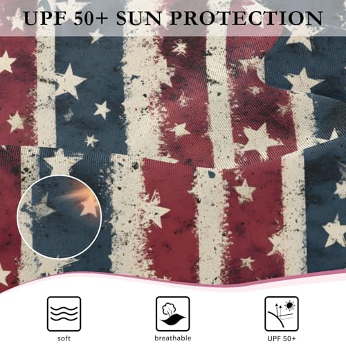 ALAZA Retro Striped Star American Flag Girls One Piece Swimsuit Long Sleeve Rashguard Swimsuit UV 50+ Swimwear Zip 7
