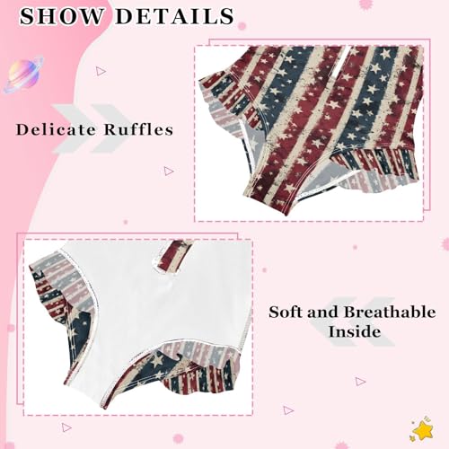 ALAZA Retro Striped Star American Flag Girls One Piece Swimsuit Long Sleeve Rashguard Swimsuit UV 50+ Swimwear Zip 4