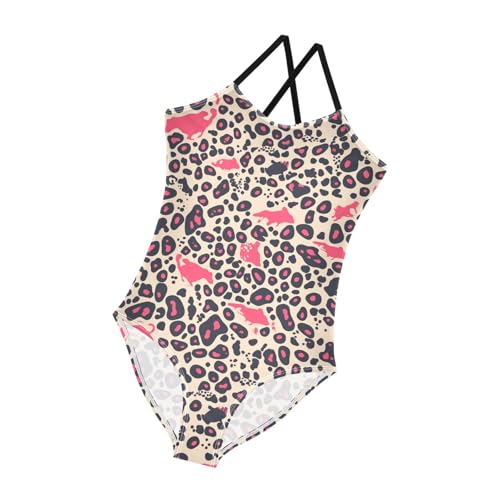 KLL Leopard Pattern Pink Black Girls' 1 Piece Bathing Suit Beach Swimming Suits Adjustable Strap Cute 6