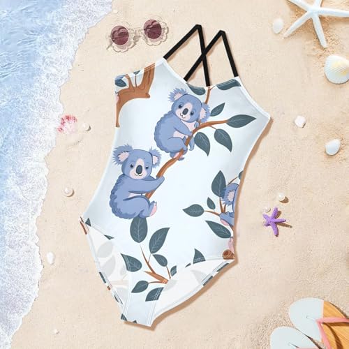 Bolaz Girls Swimsuits One-Piece Bathing Suits Multicolor Kids Sport Summer Beach Swimwear for 3-10 Years Old-Cartoon Little Koalas 1