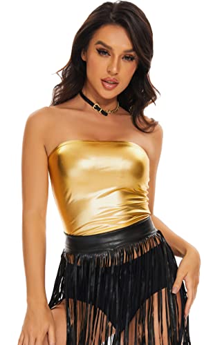 HOT ! Women's Metallic Crop Tube Top Shiny Strapless Bandeau Bra for Dancing, Raves, Festivals, Costumes