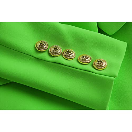 Elegant Women Gold Buttons Double Breasted Bodycon Fluorescent Green Female Blazer 6