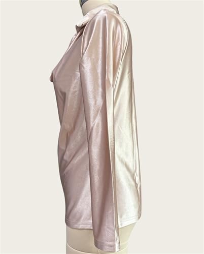 Womens Cowl Neck Satin Silk Blouse Long Sleeve Lapel Dressy Ruched Front Draped Office Casual Business Blouses 6