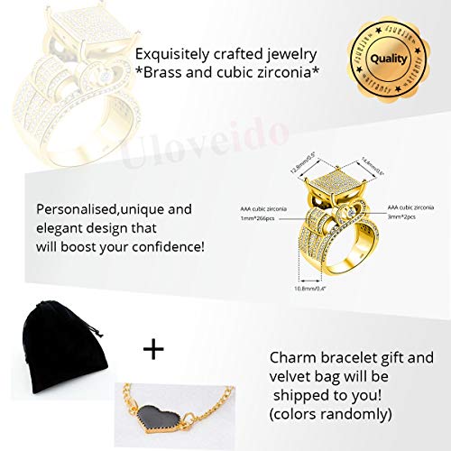 More information about Uloveido Women's 0.4" Wide Square Cluster Engagement Heart Architecture Ring, Cocktail Bling Ring for Her RA0221