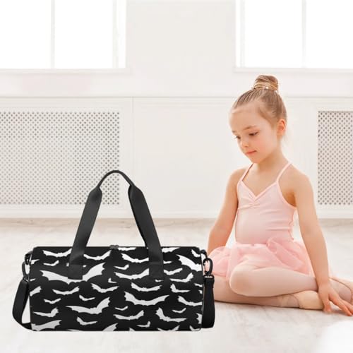HOT ! Gothic Duffle Bag Bat Gym Bag Waterproof Round Cylinder Carry-On Weekender Overnight Bag with Adjustable & Removable Shoulder Strap for Travel Sport Camping