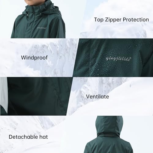More information about Boys Girls Rain Jacket,Kids Lightweight Waterproof Hooded Raincoats Windbreakers,Outdoor Hiking Coat Dark Green 9-10