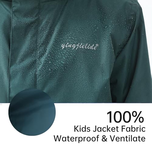 Boys Girls Rain Jacket,Kids Lightweight Waterproof Hooded Raincoats Windbreakers,Outdoor Hiking Coat Dark Green 9-10 5